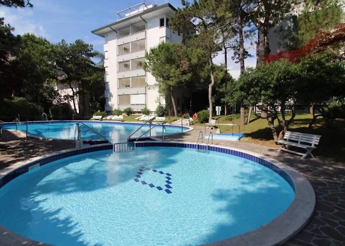 Az Elegant Retreat With Pool View Apartman Lignano Sabbiadoro a Pineta körzetben, a Parco Junior vidámparktól 25 percnyi sétára található, ahol úszómedencét és teraszt kínál.